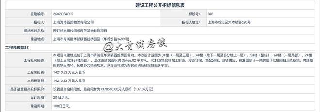 项目建设地点位于上海市青浦区华新镇西虹桥园区(华徐公路3699号),经我们梳理查证,该地址为海博西虹桥冷链物流园内(下文详细说明)。