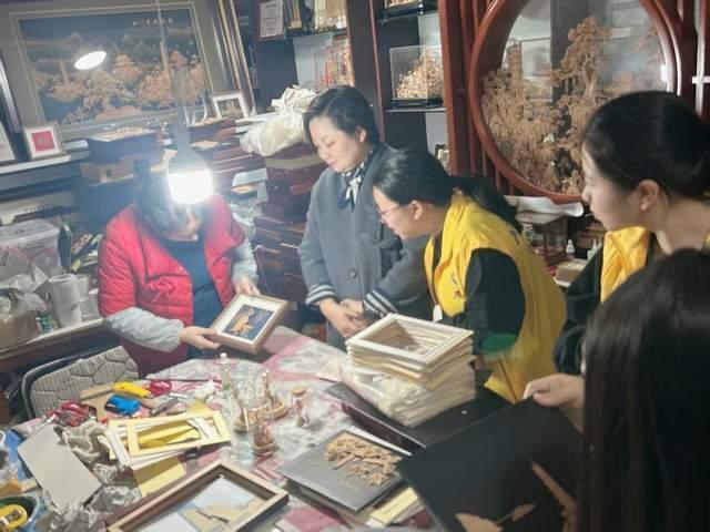 立足金融专业核心优势,实践队从“文化感知”稳步走向“问题探究”,坚持问题导向开展全方位、多层次实地调研,精准把脉不同传承场景下闽都非遗的发展现状与核心诉求。队员们深入访谈吴航喜箩、软木画、茉莉花茶等非遗项目传承人及运营管理者,细致梳理小微非遗工坊在人才培育、原料采购、产品研发、等方面面临的现实困境,以及规模化非遗生产基地在成本管控、市场拓展、品牌打造等方面的发展瓶颈;实地走访福州非遗展示馆、上下杭历史文化街区,亲身体验数字化展陈技术,系统调研非遗商户的运营模式与发展痛点,深入分析文旅融合背景下非遗业态数字化转型、市场化运营的短板与不足;走进西园中心小学,实地察看软木画进校园的推进情况,与小学授课教师深入交流,详细掌握非遗校园传承在课程设计、师资培养、教具采购等方面的实际需求,全方位、多维度摸清闽都非遗传承的痛点难点与发展期盼,为后续精准赋能筑牢基础。